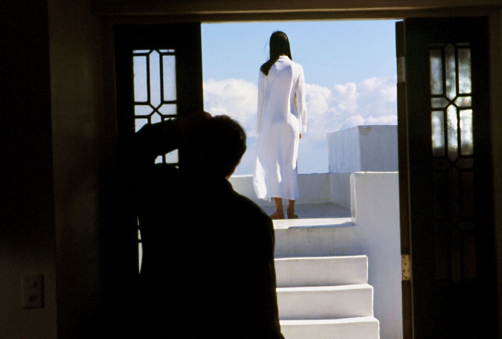 героиня весь фильм ходит в белом. Здесь такой удачный кадр, она будто светится изнутри (но светиться там на самом деле некому)